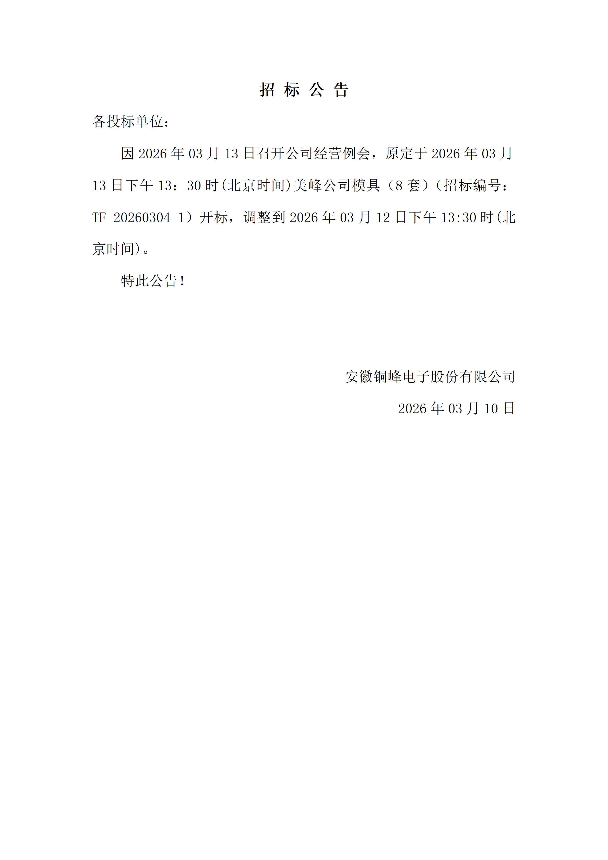 招標(biāo)時(shí)間調(diào)整公告(招標(biāo)編號(hào):TF-20260304-1)_01